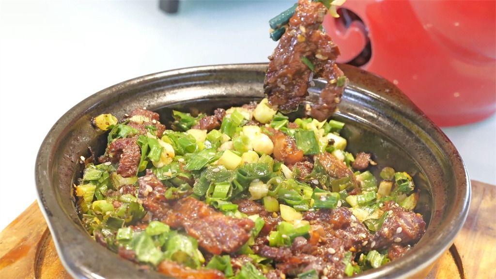 “來,試試這個(gè),我們沙溪的‘一小時(shí)牛肉’?!彼钢清伖距矫芭莸呐@吖乔鍦?。權(quán)記可還是沙溪美食文化協(xié)會的副會長,推廣本地食材是他的“使命”之一。“從屠宰場到店里,不超過一小時(shí),你說這牛肉能不香嗎?”湯底只用牛骨和鹽,喝的是本味清甜。蘸料里搗碎的咸檸檬,是來自廣西博白那邊的靈感,使牛肉吃起來既清新又增鮮醒胃。