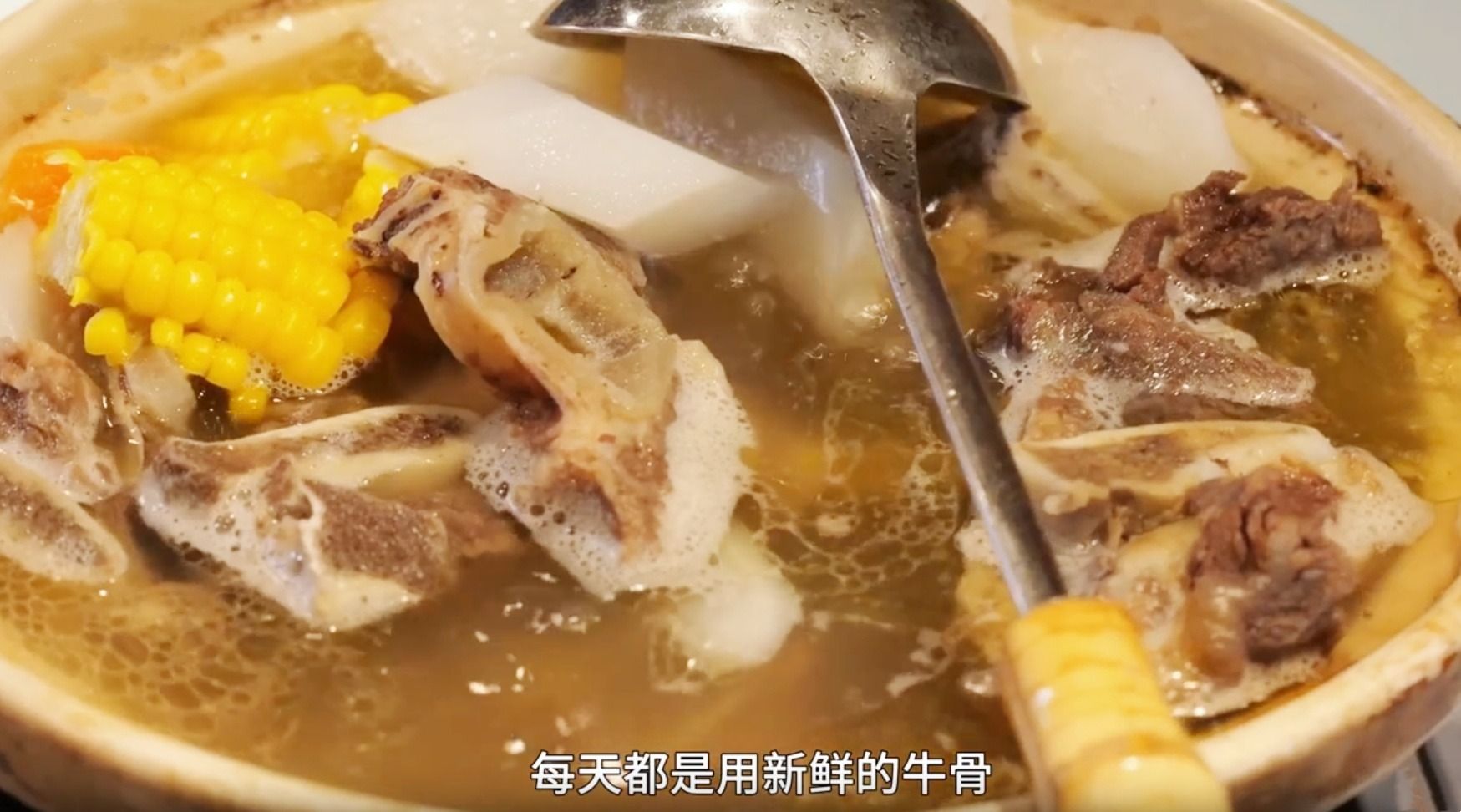 丨上:牛肋骨清湯煲。下:小蔥奶香雪花牛肉。
