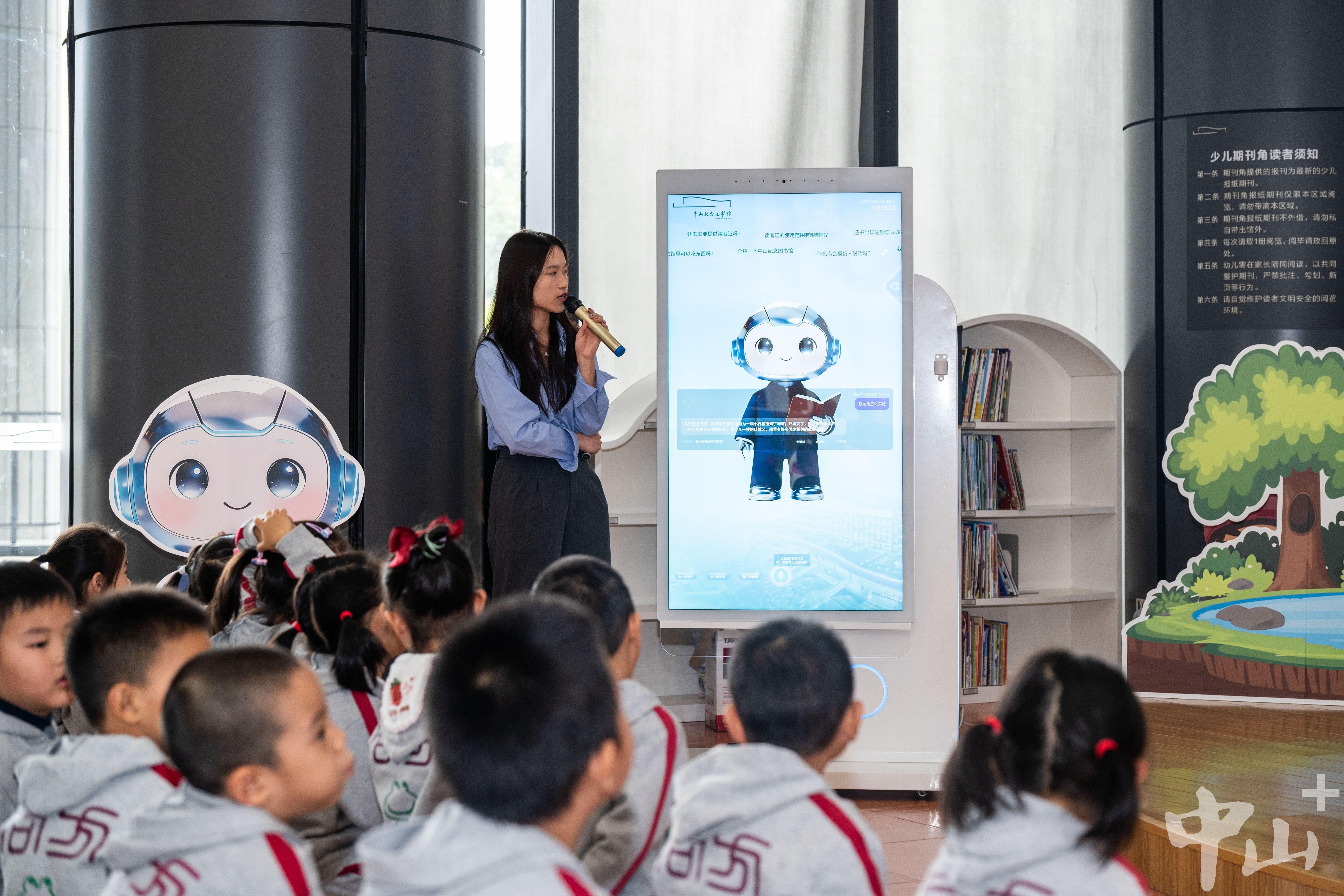 12月31日上午,在中山紀(jì)念圖書館一樓少兒館舉行“觸碰未來·‘AI’上閱讀——AI館員上線儀式暨體驗(yàn)日”活動?;顒犹匮猩绞形麄鞑俊⒅猩绞形幕瘡V電旅游局、中山市婦女聯(lián)合會等單位相關(guān)領(lǐng)導(dǎo)出席。