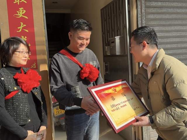 新年伊始,喜報頻傳。近日,沙溪鎮(zhèn)陸續(xù)收到多份立功受獎喜報,目前已收悉10位現(xiàn)役軍人榮獲2025年度“四有”優(yōu)秀士兵(軍官)。為弘揚(yáng)擁軍優(yōu)屬光榮傳統(tǒng),營造“一人參軍、全家光榮”的濃厚氛圍,自1月6日起,沙溪鎮(zhèn)黨委、鎮(zhèn)政府領(lǐng)導(dǎo)率領(lǐng)退役軍人服務(wù)中心、武裝部及各村(社區(qū))負(fù)責(zé)人組成慰問組,分批登門為優(yōu)秀士兵家屬送上滿載榮譽(yù)的喜報和新春祝福。 慰問現(xiàn)場,慰問組為軍屬佩戴光榮紅花,宣讀喜報,詳細(xì)介紹士兵在部隊(duì)的優(yōu)異表現(xiàn),對軍屬們默默支持國防事業(yè)、鼓勵親人建功軍營表示衷心感謝。接過喜報的家屬們臉上洋溢著自豪與喜悅,表示將繼續(xù)做好堅(jiān)強(qiáng)后盾,叮囑孩子在部隊(duì)安心服役、再立新功。