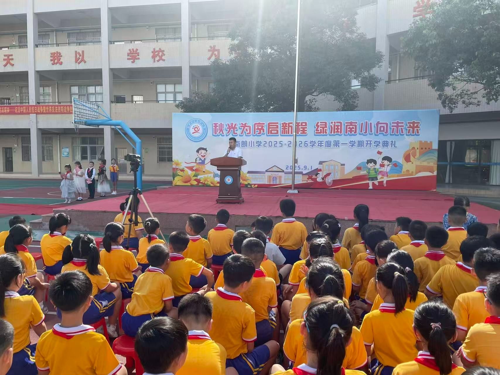 9月1日,中山南朗街道南朗小學(xué)舉行秋季學(xué)期開學(xué)典禮。開學(xué)典禮以紀念中國人民抗日戰(zhàn)爭暨世界反法西斯戰(zhàn)爭勝利80周年為主題,把愛國主義教育作為新學(xué)期的“開學(xué)第一課”,帶領(lǐng)同學(xué)們回望烽火歲月,弘揚偉大抗戰(zhàn)精神。 南朗街道南朗小學(xué)黨支部書記、校長杜少君為同學(xué)們講述了可歌可泣的抗戰(zhàn)故事。簡文祥 攝開學(xué)典禮上,南朗街道南朗小學(xué)黨支部書記、校長杜少君以《銘記偉大勝利,傳承抗戰(zhàn)精神——紀念中國人民抗日戰(zhàn)爭暨世界反法西斯戰(zhàn)爭勝利80周年》為題,講述了可歌可泣的抗戰(zhàn)故事,為全體師生上了一堂生動的思政第一課。 92歲的老校長程民興受邀來到學(xué)校,他以親歷者的身份為同學(xué)們講述校園經(jīng)歷的抗戰(zhàn)故事。簡文祥 攝南朗小學(xué)的前身是安定學(xué)校,也是1943年南朗安定戰(zhàn)斗的核心遺址?;顒赢斎?,92歲的老校長程民興受邀來到學(xué)校,他以親歷者的身份為同學(xué)們講述校園經(jīng)歷的抗戰(zhàn)故事,讓過去的歷史多了份可觸的溫度。“日本飛機轟炸安定學(xué)校時,瓦片碎裂的聲響至今仍在耳畔回響,那次轟炸,我險些沒能活下來?!彼嬖V同學(xué)們,日寇占據(jù)安定學(xué)校后,把兩層教學(xué)樓改造成堡壘,墻外布滿帶刺的鐵絲網(wǎng),槍口日夜對著村口;那時他就躲在閣樓里,親眼看見二樓窗口常年架著機槍,夜里探照燈掃過田野時,全村人都屏息凝神,不敢發(fā)出半點聲響。 如今,程民興的兒女們在國外生活,孩子們想要接他出國,但他卻執(zhí)意留在國內(nèi)。他告訴同學(xué)們:“你們看,咱們現(xiàn)在的日子多好啊——吃的、用的樣樣齊全,出門不管是坐車還是騎車,去哪兒都特別方便;再瞧瞧你們的校園,環(huán)境優(yōu)美,設(shè)備先進。同學(xué)們一定要珍惜這么好的學(xué)習(xí)環(huán)境,認真讀書,增長本領(lǐng),祖國的建設(shè)以后就要靠你們了?!?/p> 杜少君帶領(lǐng)孩子們到南朗小學(xué)操場保留的帶彈孔的殘墻,講述抗戰(zhàn)往事。簡文祥 攝 活動最后,杜少君特意帶領(lǐng)孩子們到南朗小學(xué)操場保留的帶彈孔的殘墻,觸摸那些深淺不一的彈痕。他指向殘墻旁生長的綠植說道:“這片曾被戰(zhàn)火灼燒的土地,如今已長出繁榮的新綠。烈士們用生命守護的家園,正在一代代人的手中變得更好。”觸摸彈痕的那一刻,同學(xué)們仿佛在與歷史對話:傳承偉大抗戰(zhàn)精神,不是一句口號,而是要接過前輩的接力棒,在新時代為家鄉(xiāng)、為祖國奮斗。 校園操場、紅色地標、親歷者、戰(zhàn)斗遺址串聯(lián)起一堂行走的思政課。杜少君說:“讓孩子們在歷史現(xiàn)場觸摸過去,才能真正理解‘銘記’的意義。偉大抗戰(zhàn)精神的傳承,就藏在每一次駐足、每一次傾聽、每一次思考里?!?/p> 通訊員:于銳 簡文祥 ◆編輯:吳玉珍◆二審:鄭沛鋒◆三審:周亞平 文盾校對——用科技,守文字 |