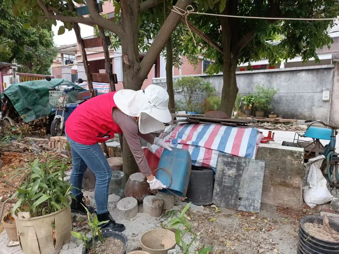 愛(ài)國(guó)衛(wèi)生運(yùn)動(dòng)同步推進(jìn),為“兩熱”防控打下堅(jiān)實(shí)基礎(chǔ)。結(jié)合“百千萬(wàn)工程”人居環(huán)境整治要求,翠亨新區(qū)(南朗街道)掀起全員參與的環(huán)境整治熱潮:黨員干部率先帶頭沖鋒,志愿者與村(居)民積極響應(yīng)跟上,大家齊心協(xié)力清理衛(wèi)生黑點(diǎn)、清運(yùn)各類(lèi)垃圾、清拆亂搭亂建,還對(duì)公共區(qū)域的積水進(jìn)行“拉網(wǎng)式”排查清理。通過(guò)清理雜亂的角落和積水的盆栽,轄區(qū)巷道變得整潔、院落變得清爽,環(huán)境面貌大為改觀,從源頭徹底鏟除了蚊蟲(chóng)孳生的“溫床”。