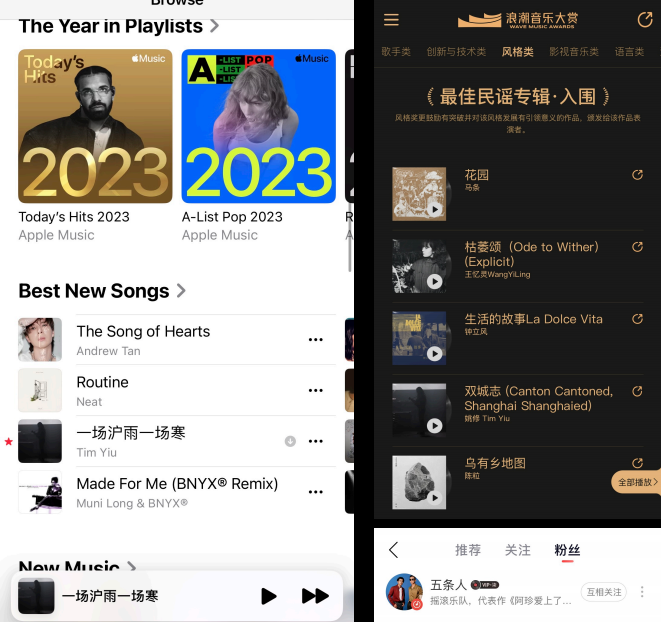他的嘗試獲得了業(yè)界認(rèn)可?!峨p城志》先后獲得“第三屆浪潮音樂大賞最佳民謠專輯”提名和“聲音圖書館2024最喜愛專輯”提名。市場(chǎng)反饋也出乎意料,音樂平臺(tái)數(shù)據(jù)顯示,該專輯在東京的收聽量甚至超過了深圳。