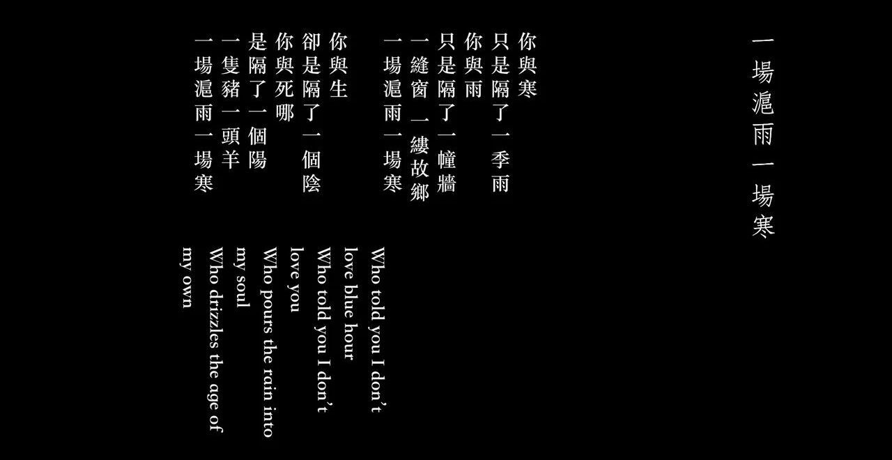 于是,那句描繪節(jié)氣更迭的俗諺“一場(chǎng)春雨一場(chǎng)暖”,在他的世界里被徹底顛覆?!爱?dāng)時(shí)的我覺得,春雨其實(shí)是寒的。”他有感而發(fā),寫下“一縫窗,一縷故鄉(xiāng)。一場(chǎng)滬雨一場(chǎng)寒”,道出了那份浸入骨髓的惆悵。歌曲后段加入的英文歌詞,是他后來在某個(gè)“藍(lán)調(diào)時(shí)刻”的補(bǔ)筆:“who told you I don't love blue hour?”英語的“藍(lán)色”Blue也有憂郁的意味。心境的低潮未必總是壞事,有時(shí)候反而能夠讓人沉下心來,為下次的出發(fā)積蓄力量。
