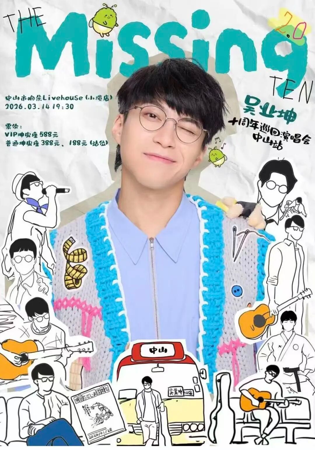 這份堅持與熱愛,也將延續(xù)到即將到來的中山音樂會上。3月14中山響朵(小欖店)舉辦“The Missing Ten十周年巡回演唱會2.0”,吳業(yè)坤將帶著他的歌聲與中山歌迷相遇。談及他在中山的首場演唱會,吳業(yè)坤滿是期待,更透露了驚喜彩蛋:此前廣州站的9鐘經(jīng)典串燒歌環(huán)節(jié)在中山站上演升級版。“想知道當(dāng)晚會有什么歌的話,就一定要來現(xiàn)場了。他微微一笑道。